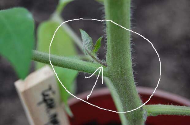 Чтобы не путать пасынки с листьями, внимательно посмотрите на куст. Пасынки растут на голом стебле. Вначале растет лист, а уж потом из пазухи листа (между листом и основным стеблем) появляется побег – пасынок, который постоянно растет. На нем появляются новые листочки и «свои собственные» пасынки 2-го порядка. Куст начинает ветвиться.
